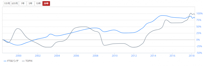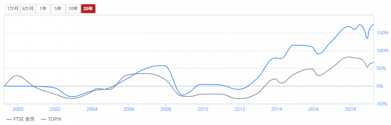 過去20年では、TOPIXの2.5倍以上のリターンを得られていることがわかります。