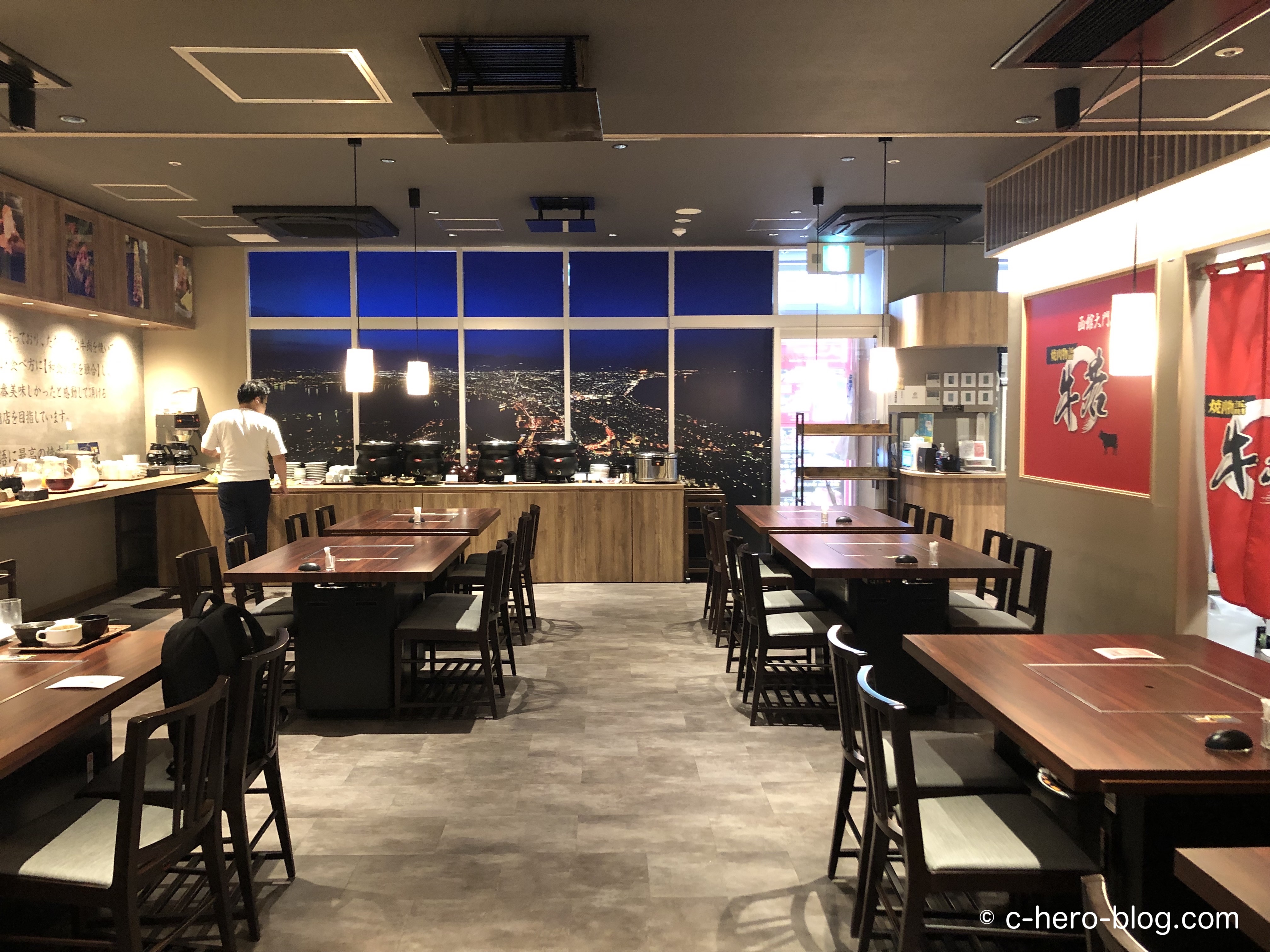 17:00-23:30(日曜は22:00)は焼肉屋、朝は朝食会場として機能。