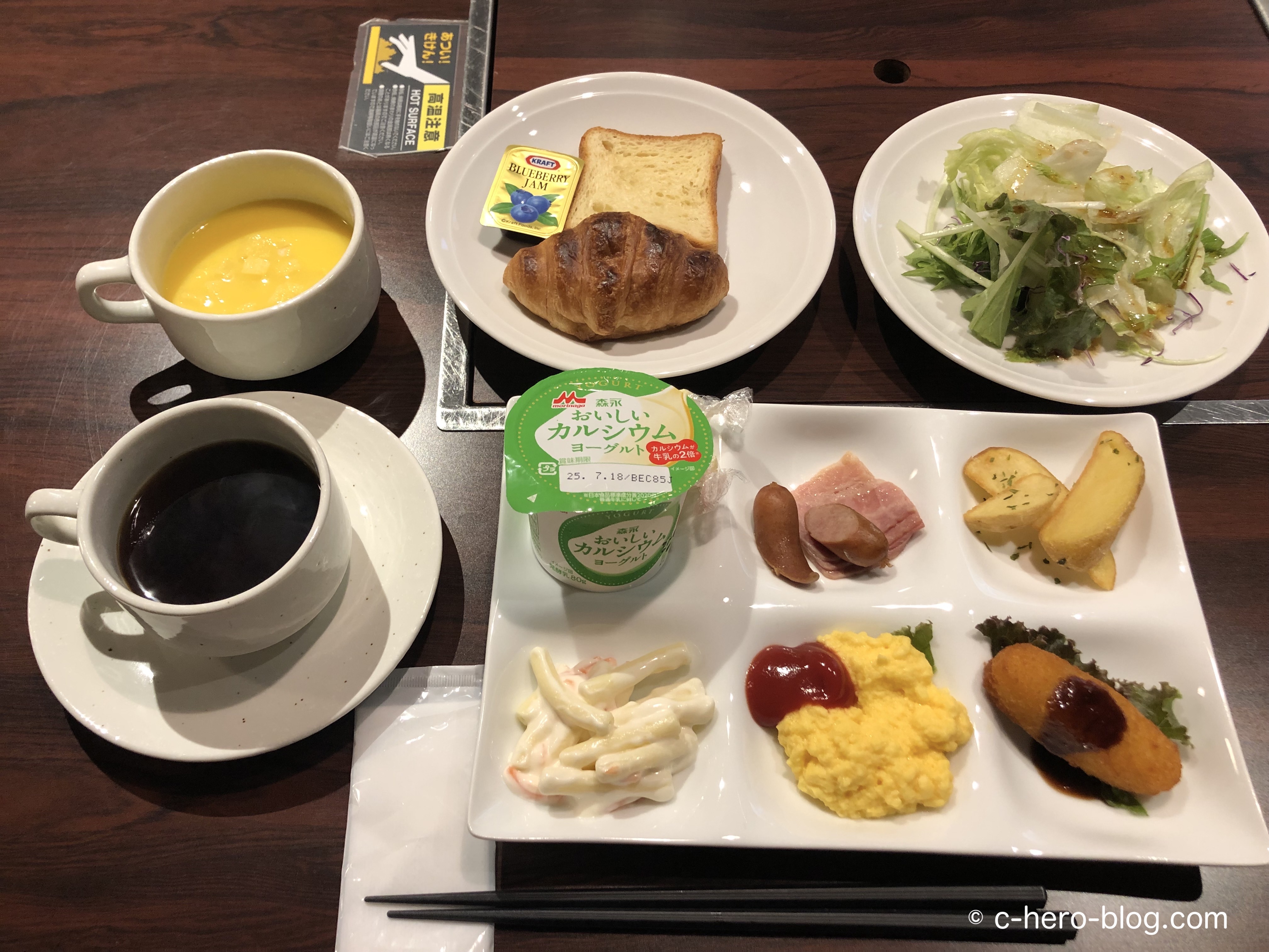 他のビジネスホテルと比較すると、品数を加味すれば若干割高かな、といった印象ですが、味は悪くなかったです。