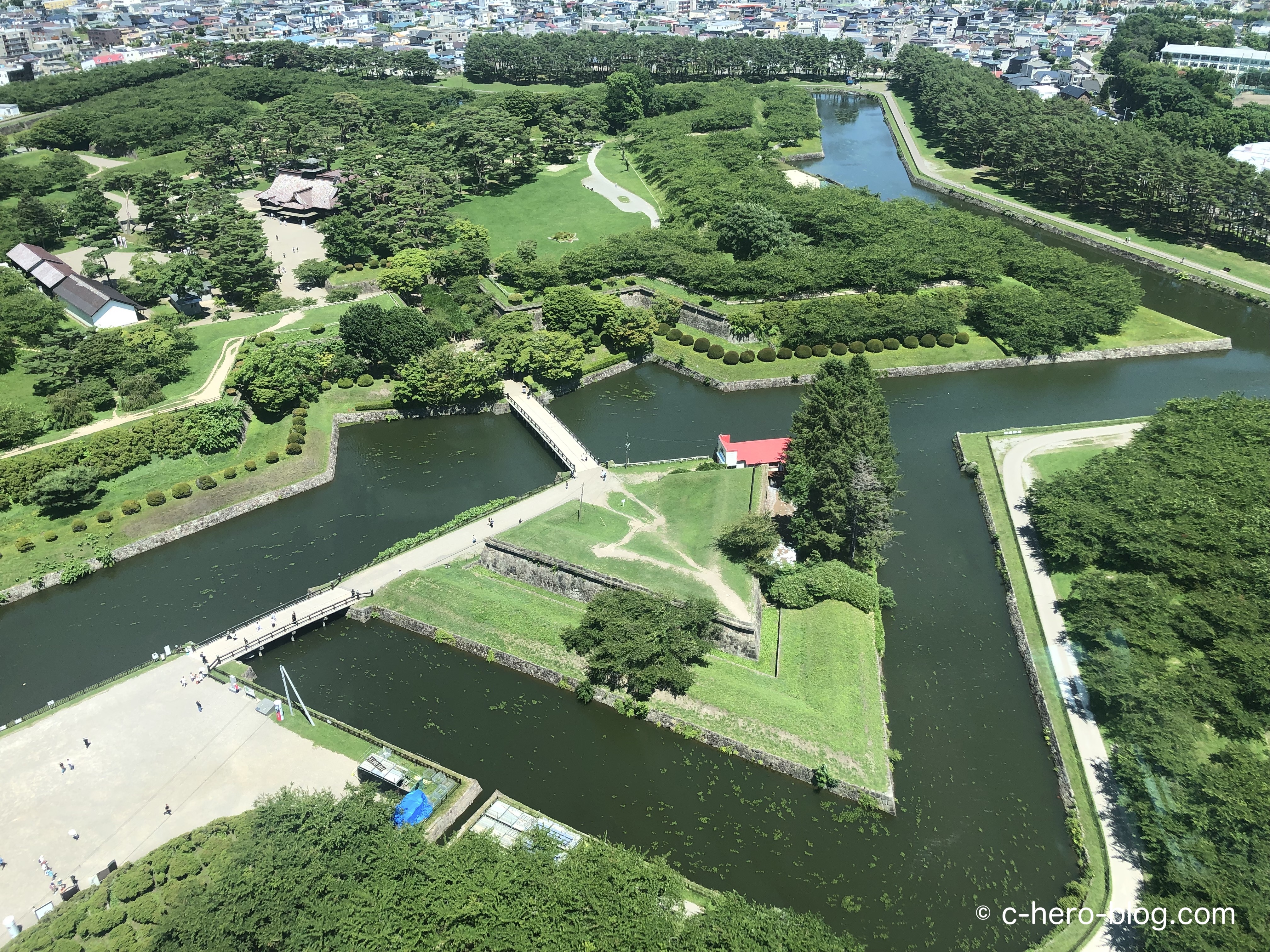 五稜郭タワー(こちらは有料で、大人: ¥1,200/人)から、五稜郭全体を俯瞰したり、函館の街を眺めるのもオススメです。