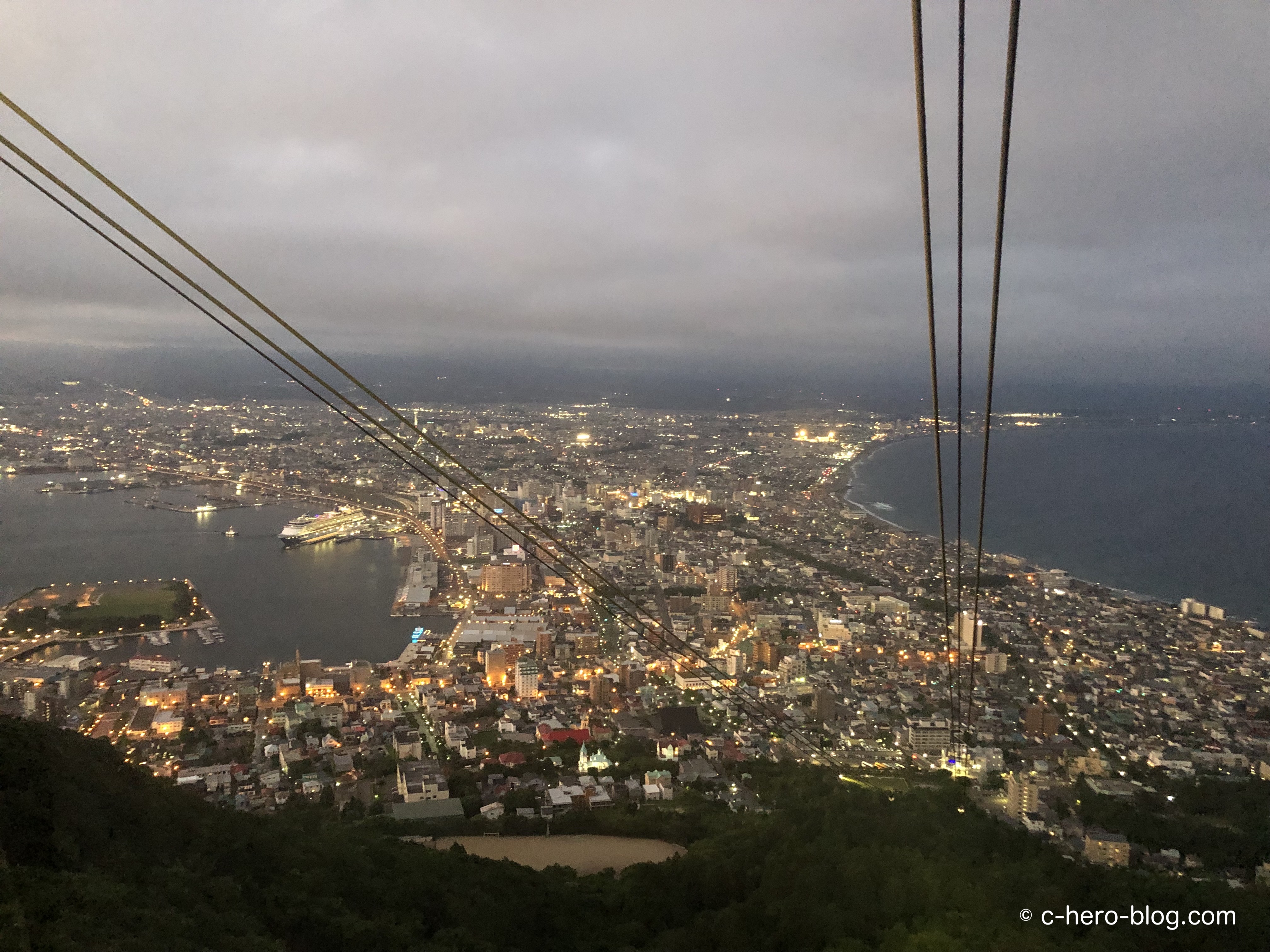 帰路における混雑を避けるため、日没後すぐ戻りのロープウェイに乗りましたが、そこからの景色が想像以上に良かったです。