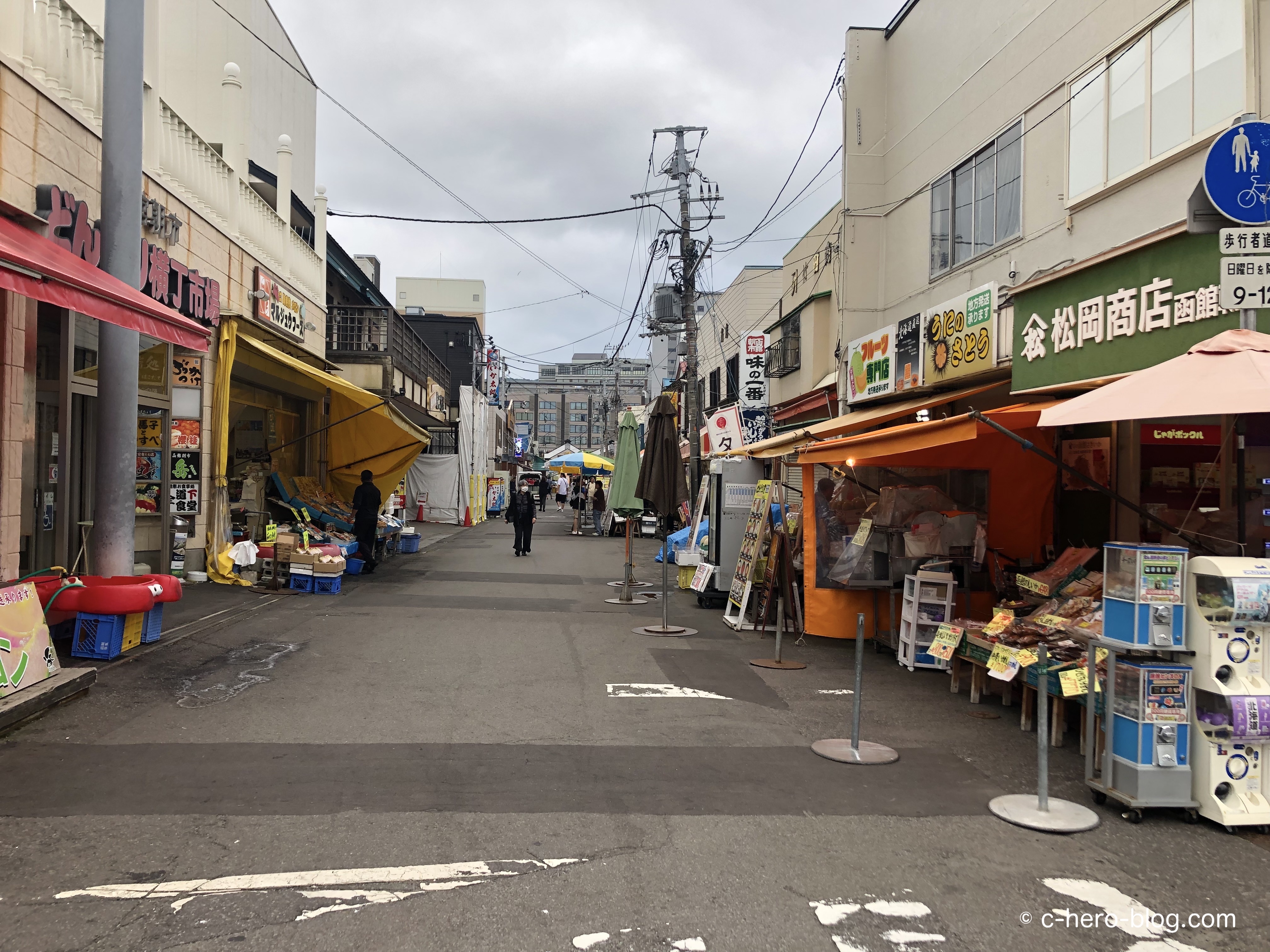 ホテルから歩いてすぐ、JR函館駅前の一角が朝市エリアとなっています。