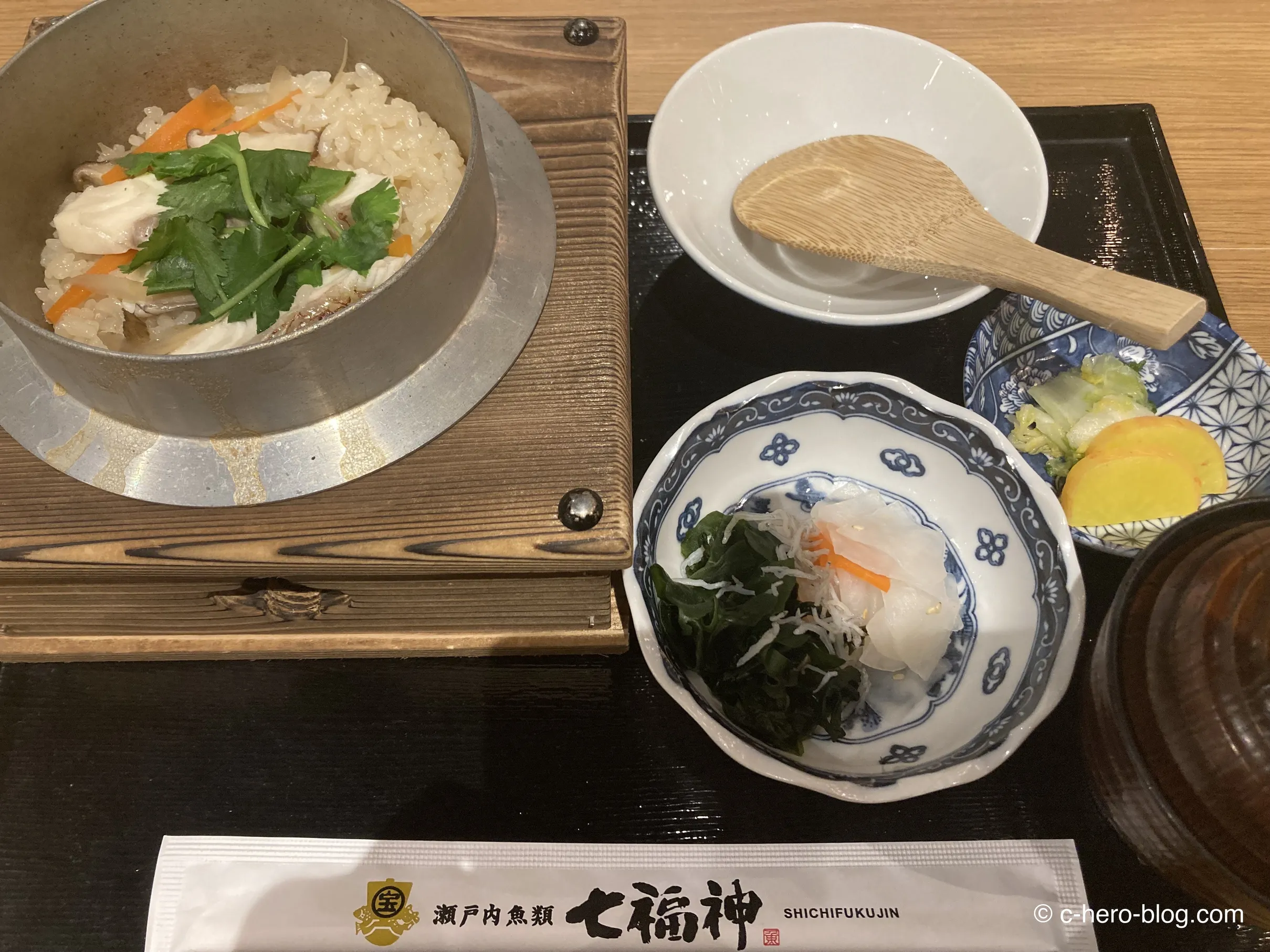 鯛の旨みがたっぷり詰まった釜飯タイプで、夕食にぴったりでした。