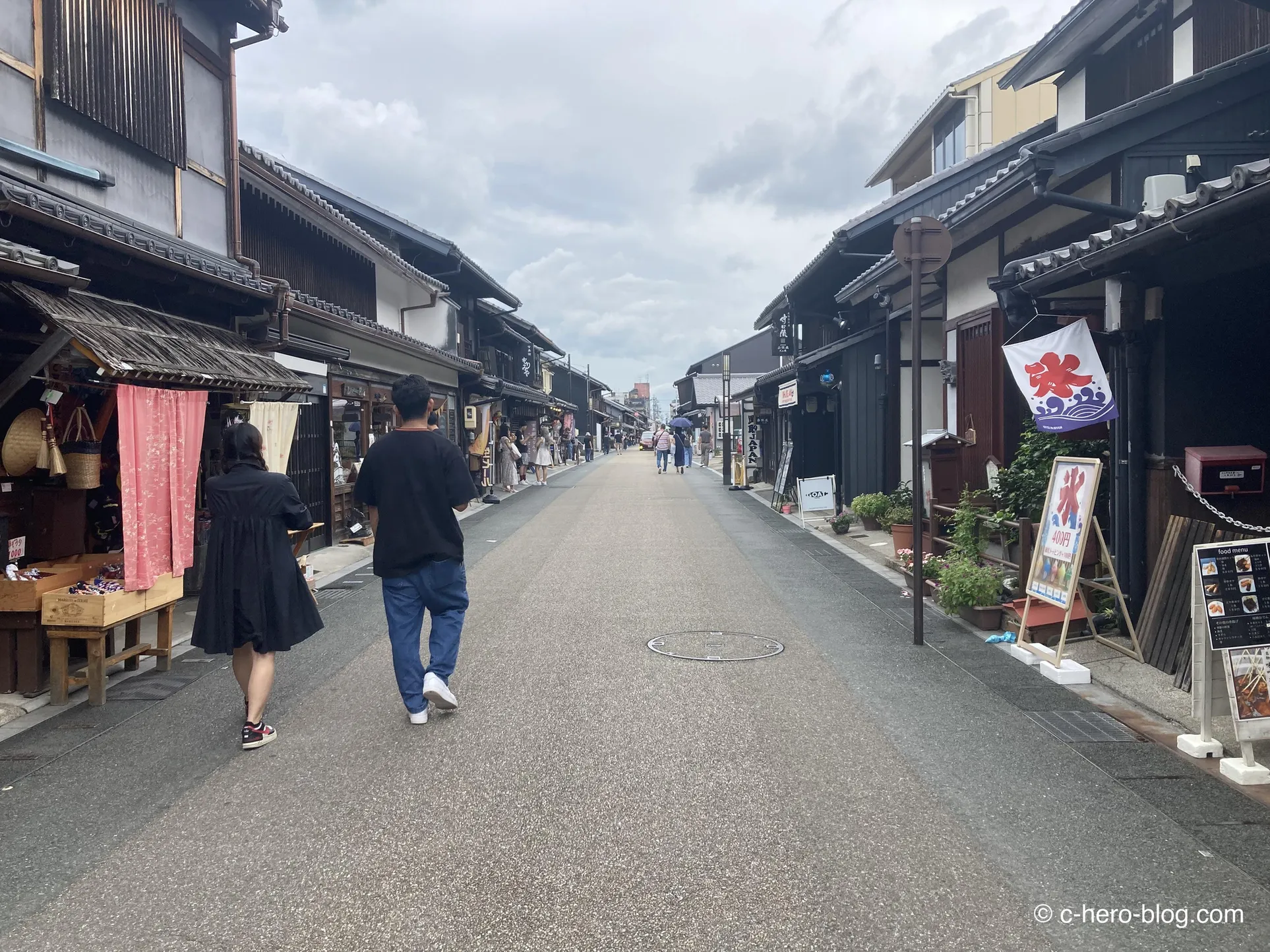 風情ある街並みが続き、食べ歩きグルメや土産物屋が並んでいます。お腹に余裕のある方はぜひ立ち寄ってみてください。